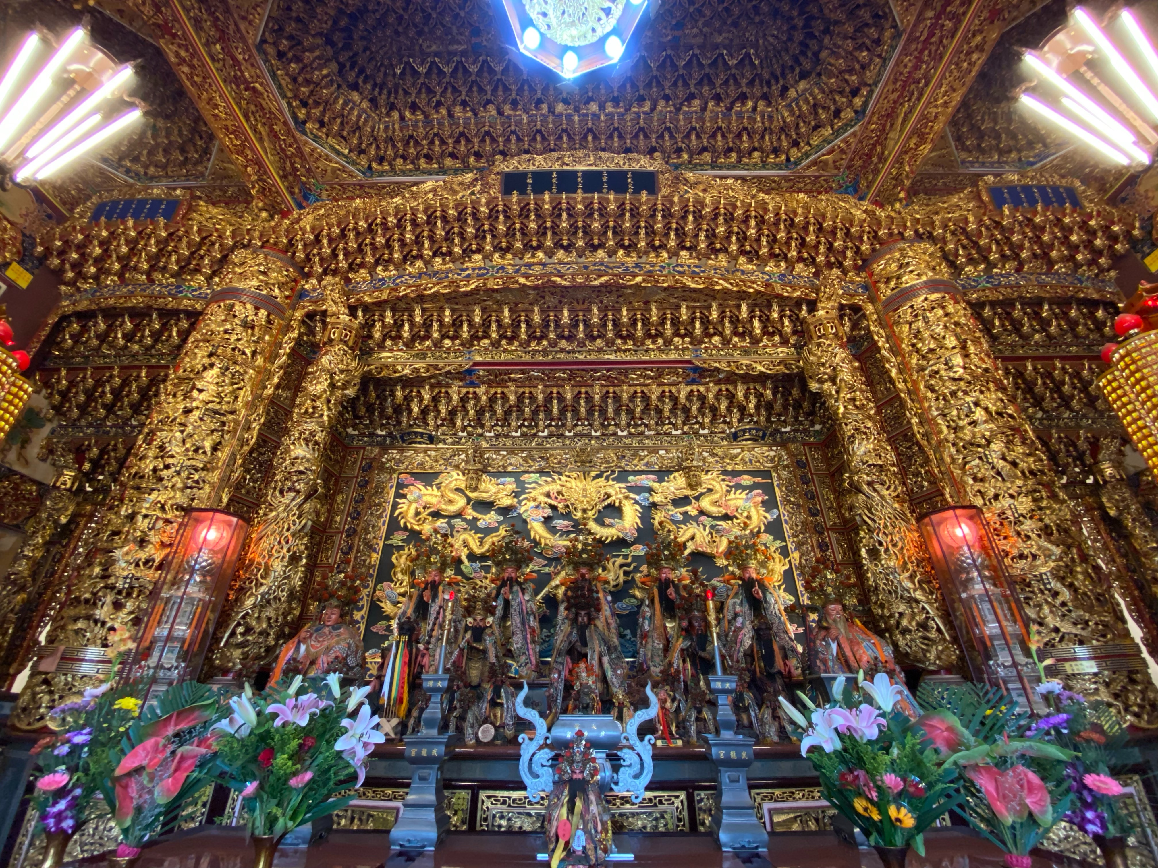 新廟殿巍峨壯闊,廟前龍柱、庭獅、精雕細琢,金闕至尊玉皇上帝及恩主開基玄武上帝神威賡續廣佑萬民。